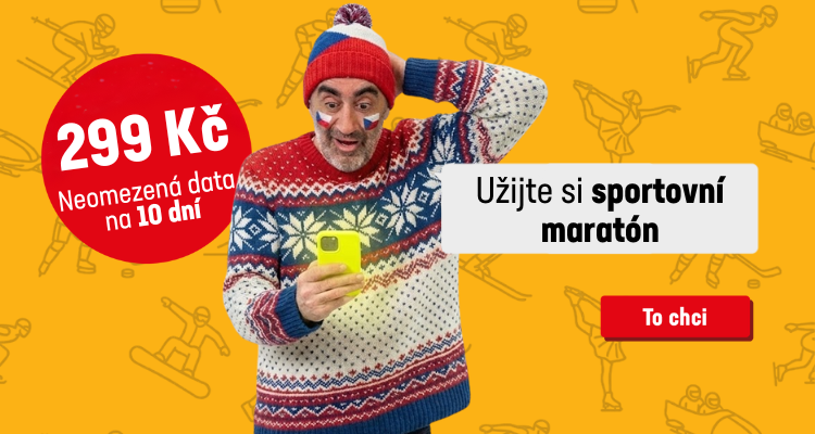 Sportovní maratón přežijete jedině, když budete pořád online. Neomezená data na 10 dnů za akční cenu 299 Kč je to pravé, co každý sportovní fanda potřebuje právě teď.